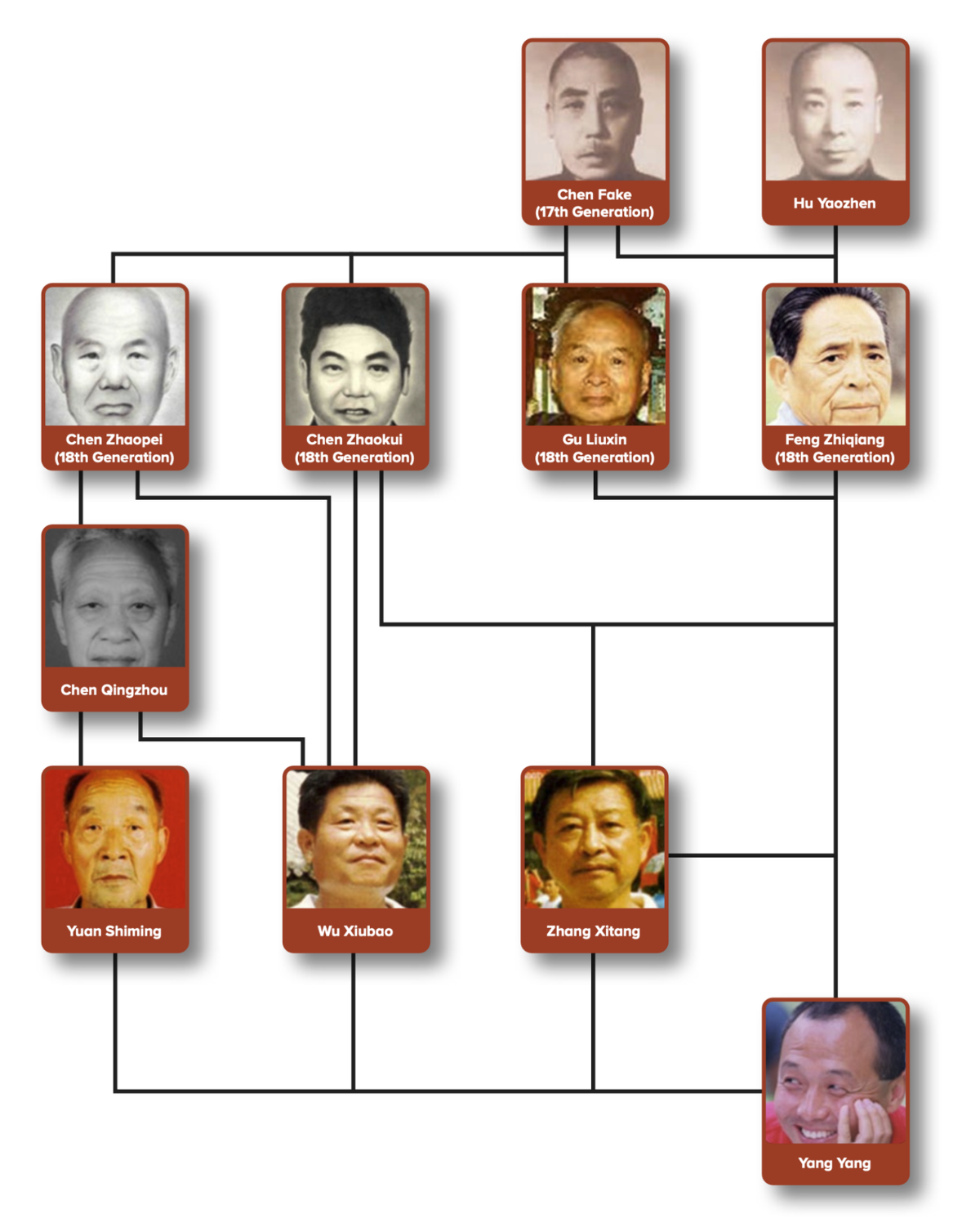 Lineage—in ancient Chinese culture is a treasured and honored tradition. It includes not only a long line of family and teachers—but the values instilled, lessons taught, and honored traditions passed along to future generations. This might include things like healing, philosophy, and martial art training. Below is some of Dr. Yang Yang’s lineage.